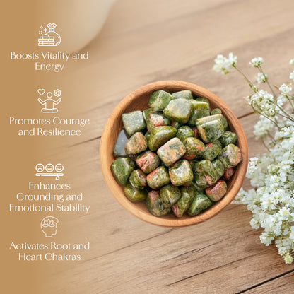 Restore your strength, courage, and energy flow with this 1lb bag of Bloodstone Tumbled Stones. Revered for centuries as a powerful healing stone, Bloodstone healing stones are ideal for grounding, protection, and revitalization. These stones are especially valued for their ability to increase physical endurance and boost confidence in times of stress.