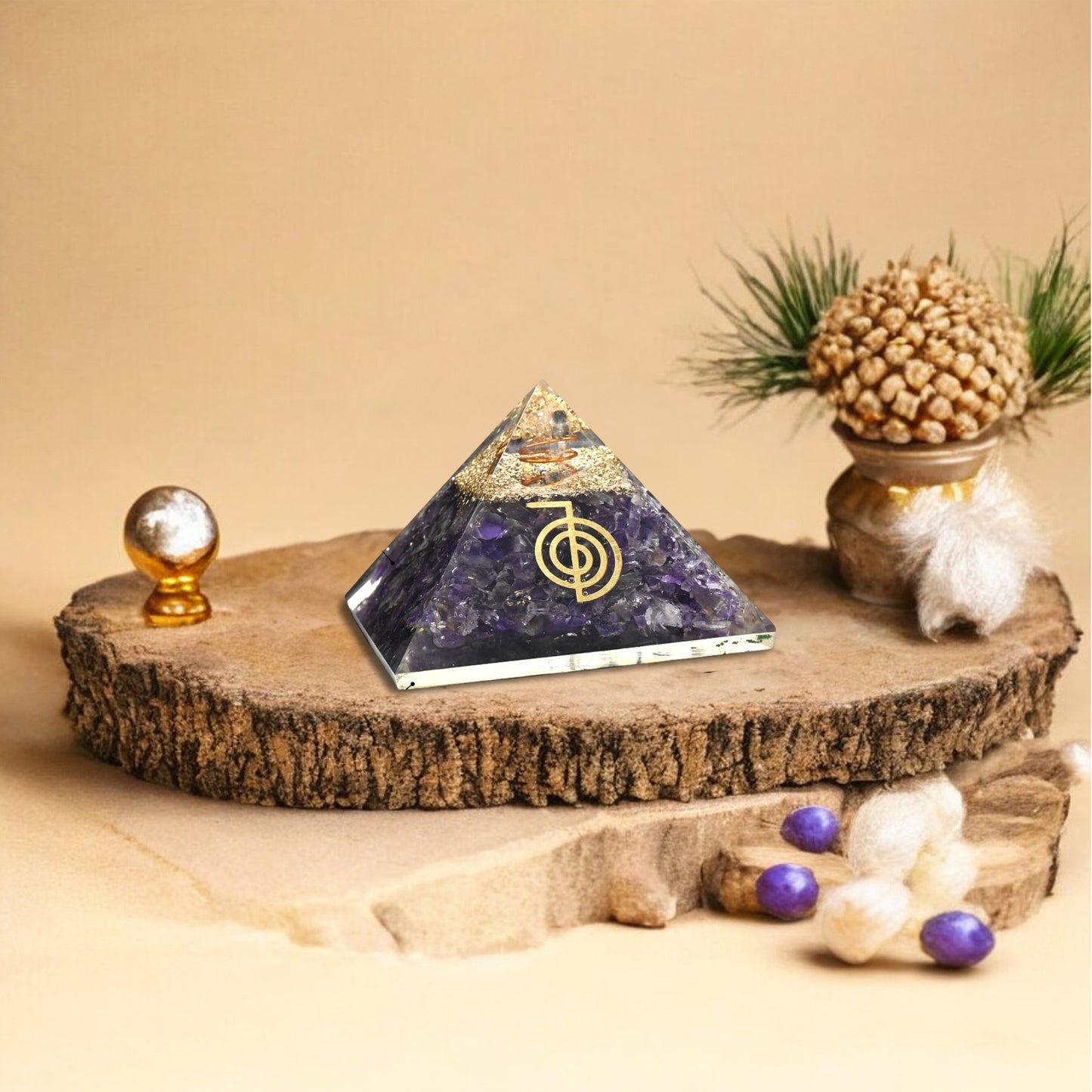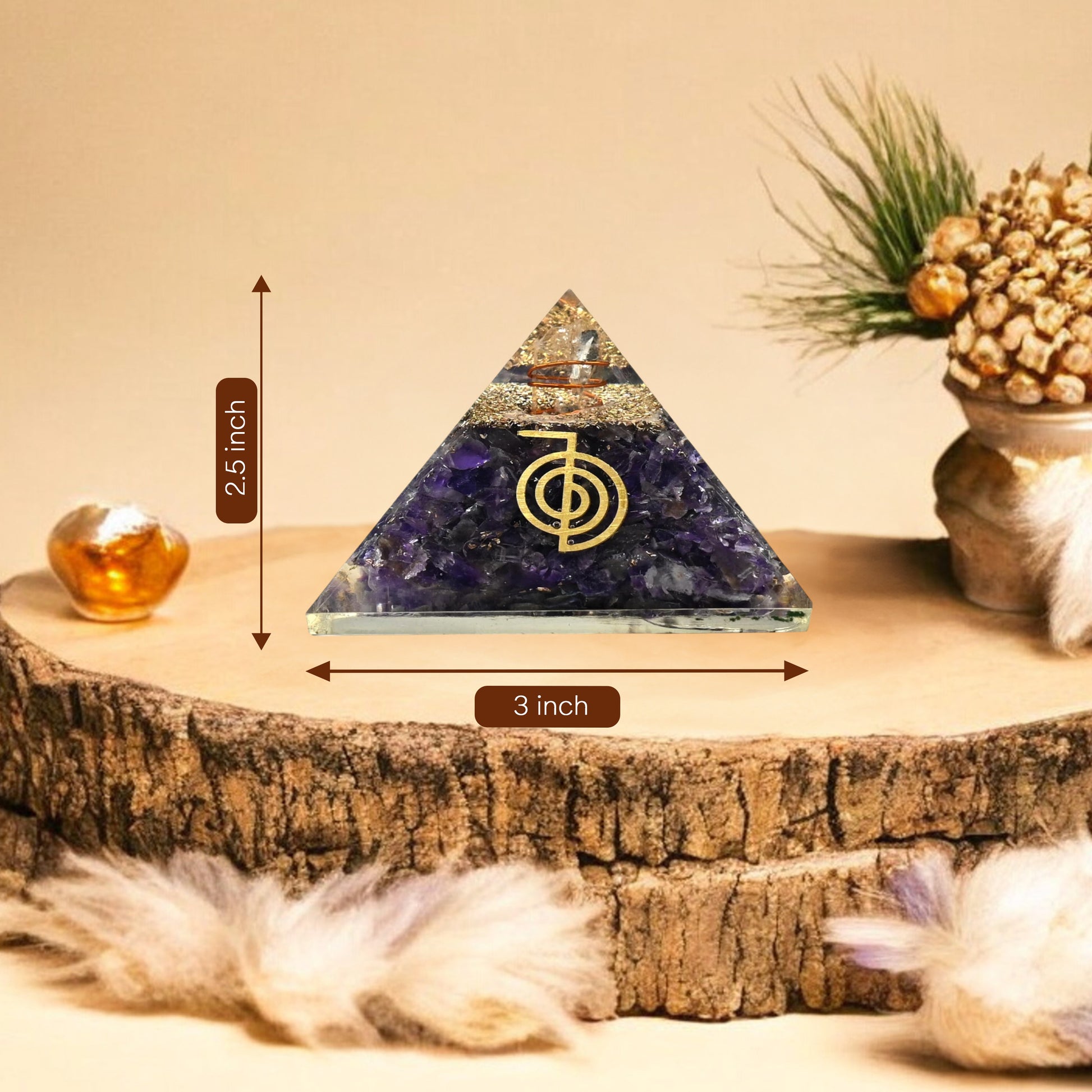Amethyst Orgone Pyramid with Reiki Power Symbol
