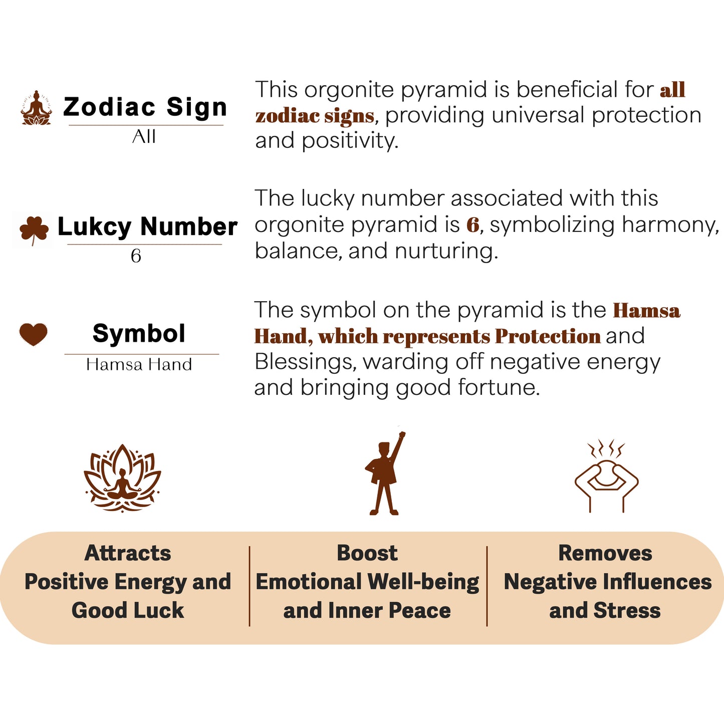 This pyramid serves as a powerful tool for protection, grounding, and spiritual well-being. The combination of Black Tourmaline and the Hamsa Hand creates an energetic shield, promoting balance and tranquility.
