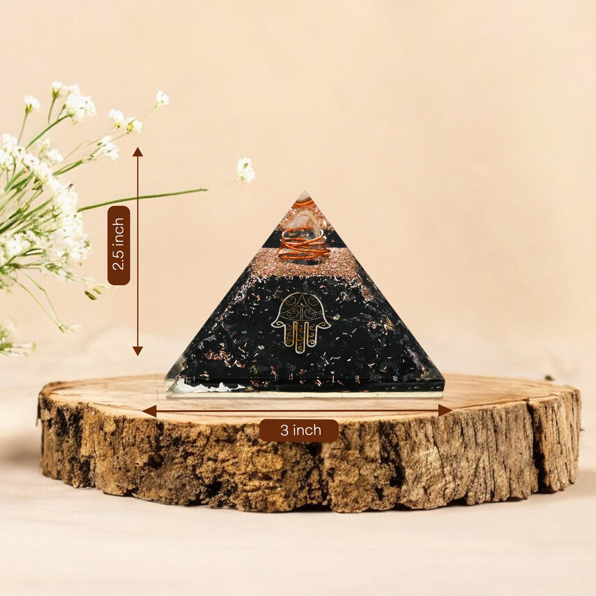 Black Tourmaline Hamsa Hand Orgone Crystal Pyramid