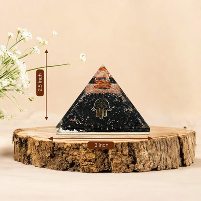 This Black Tourmaline Orgone Pyramid with the Hamsa Hand symbol is a must-have for those seeking protection from negative energies, grounding, and spiritual harmony. Elevate your spiritual practice and environment with this powerful orgone tool.