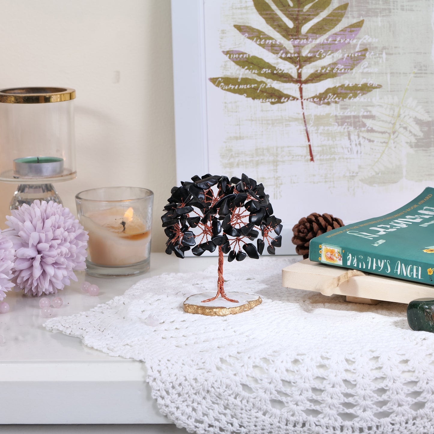 Ground your space with the powerful energy of this handcrafted Black Tourmaline Crystal Tree, a protective symbol of strength, stability, and spiritual grounding. Designed with polished gemstone leaves and adjustable wire branches, this beautiful decor piece is more than just art—it's a functional energy tool rooted in ancient wisdom and healing intention.