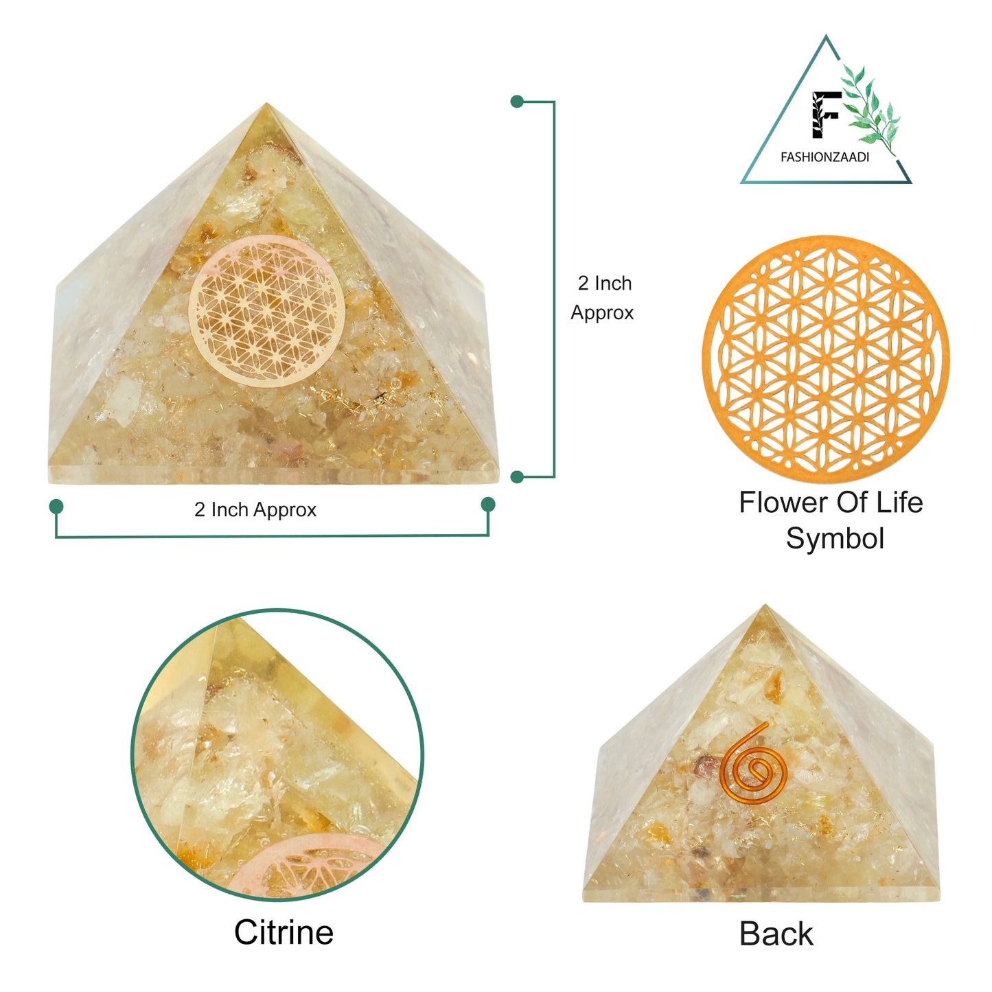 • EMF Protection: The Citrine Orgonite Pyramid with the Flower of Life symbol provides effective protection against electromagnetic radiation (EMF), shielding the user from harmful electromagnetic frequencies emitted by electronic devices.