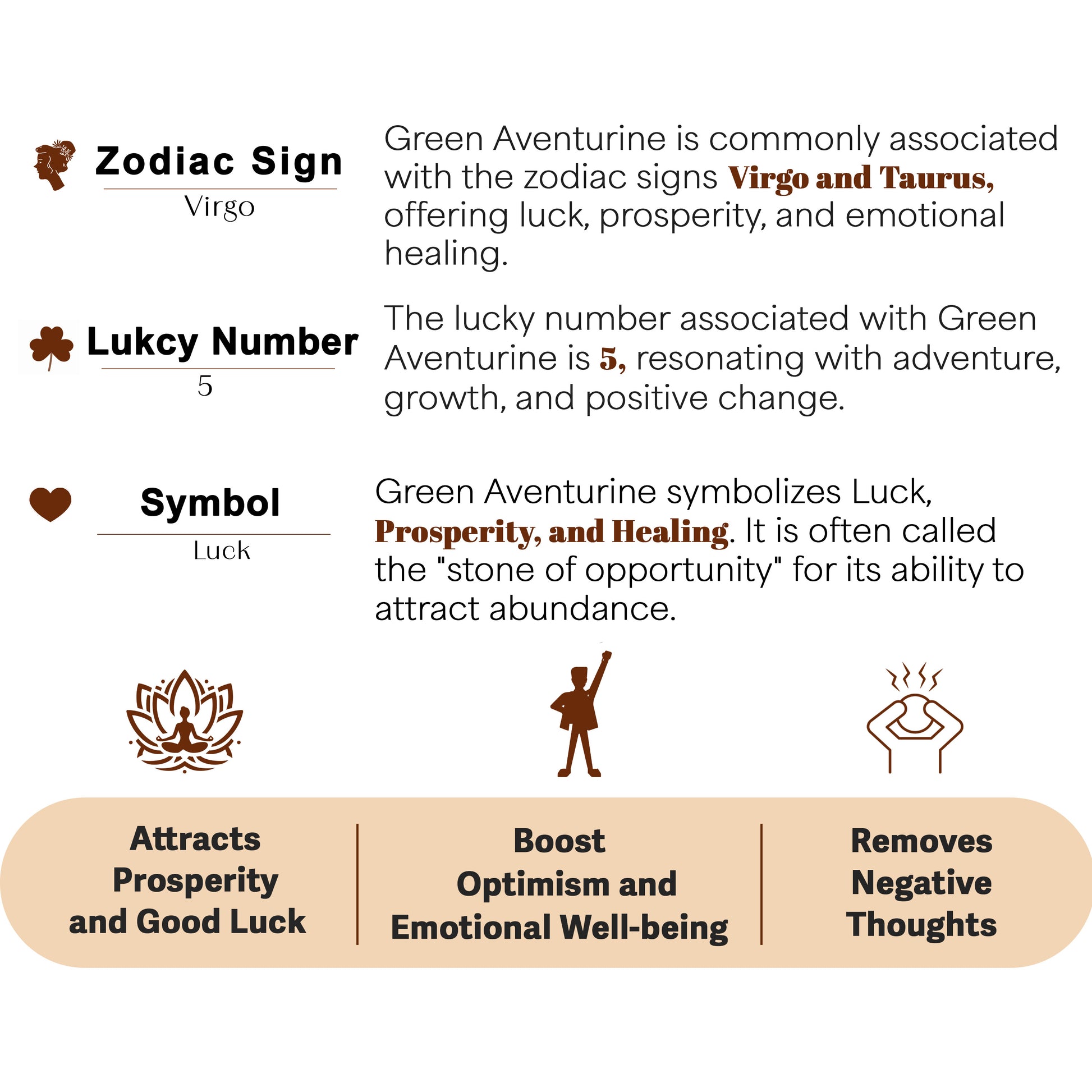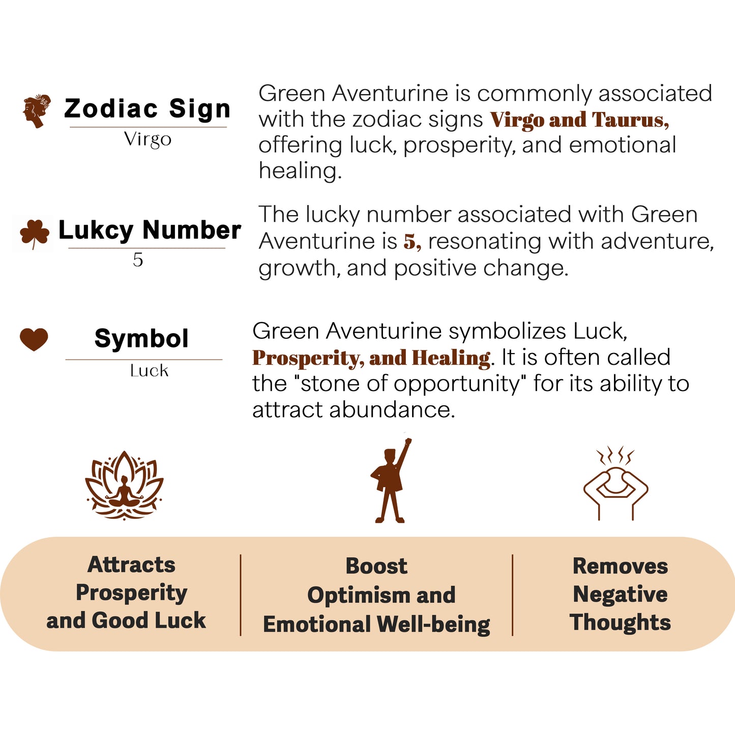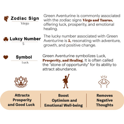 Green Aventurine, known as the "Stone of Opportunity," is prized for its ability to attract luck, success, and wealth. It inspires confidence and encourages new beginnings, helping you seize opportunities with a positive mindset.