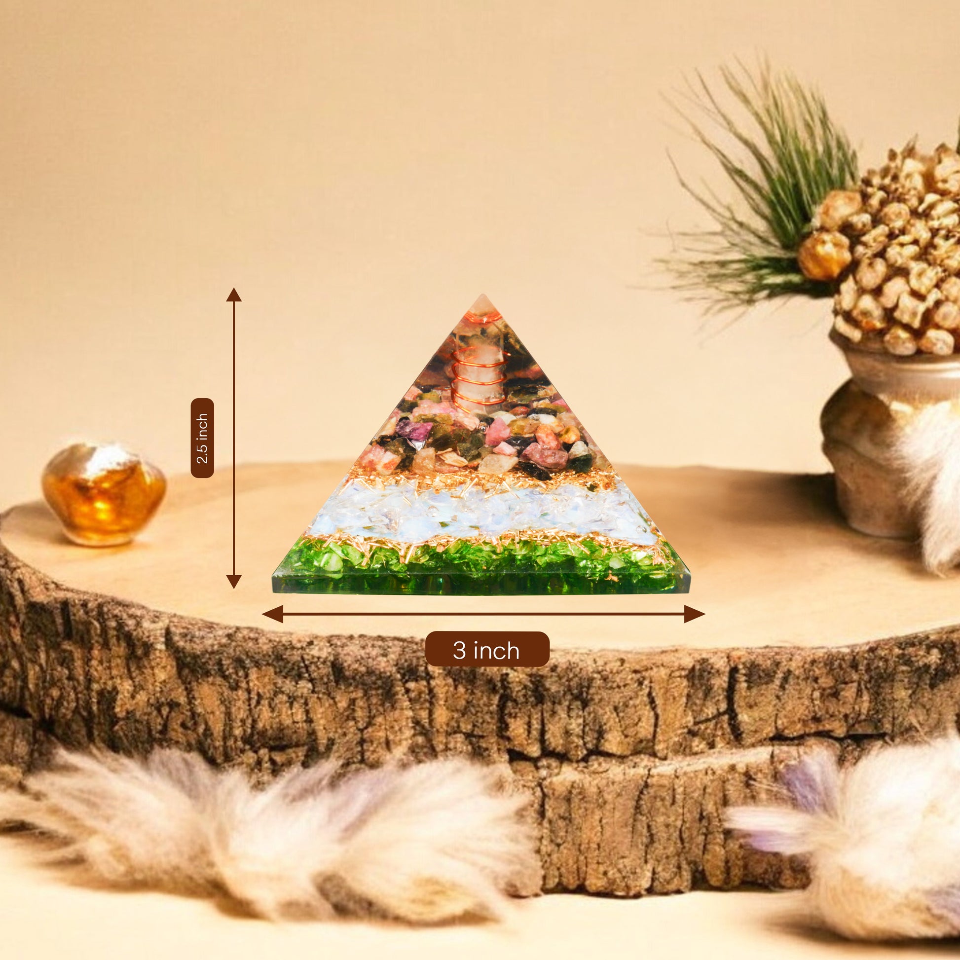 Green Aventurine, Opalite, and Multi-Tourmaline Orgone Pyramid for Luck and Positive Energy