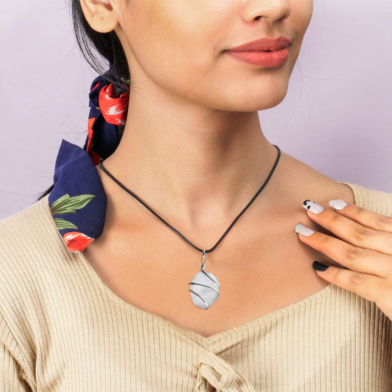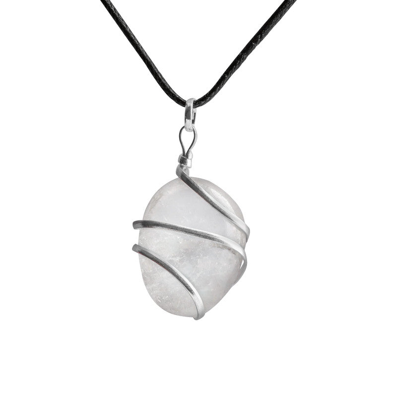 Clear Quartz Tumbled Healing Crystal Gemstone Necklace For Women