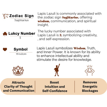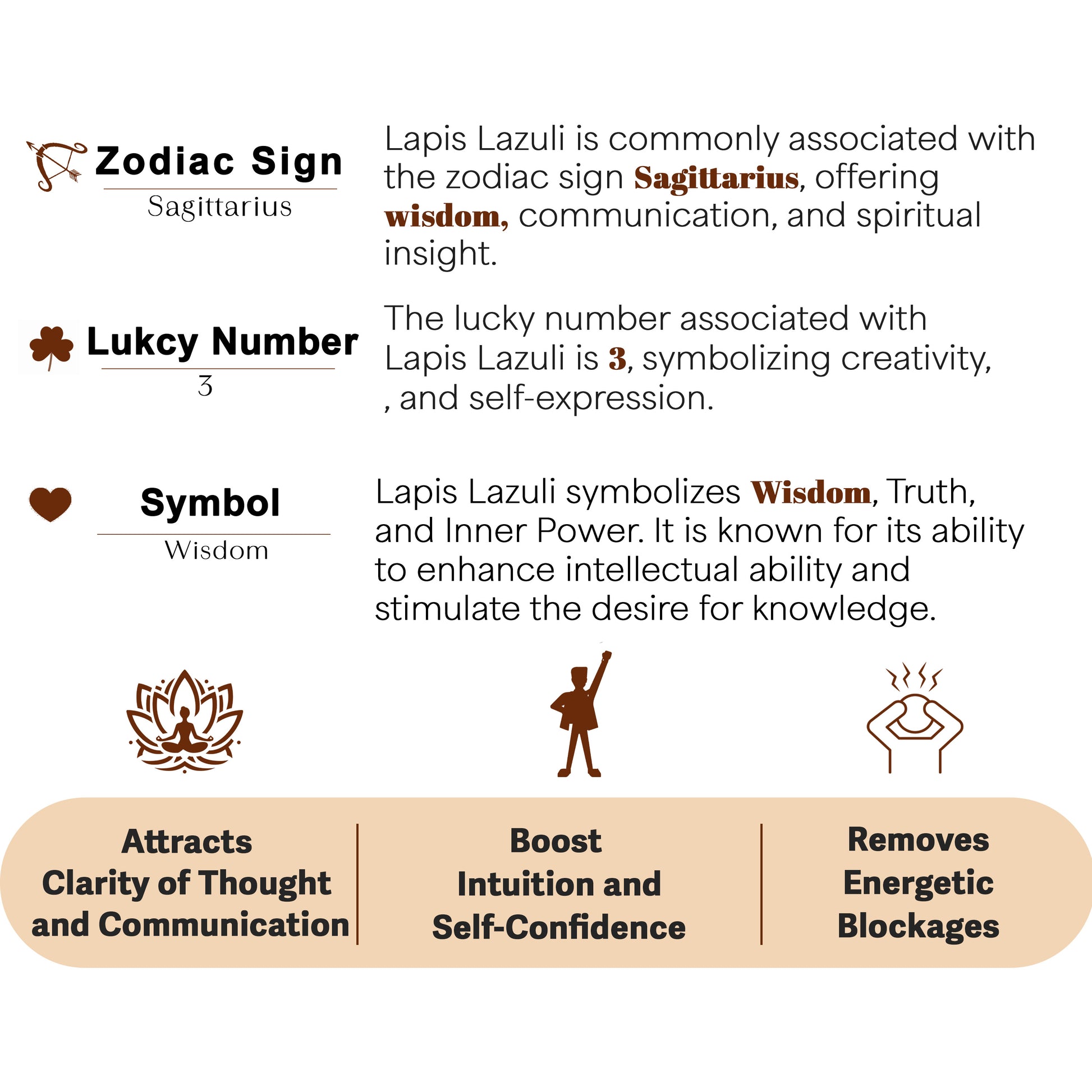 • Wisdom and Spiritual Insight: Lapis lazuli is revered for its ability to awaken higher awareness, deepen spiritual insight, and encourage self-expression.