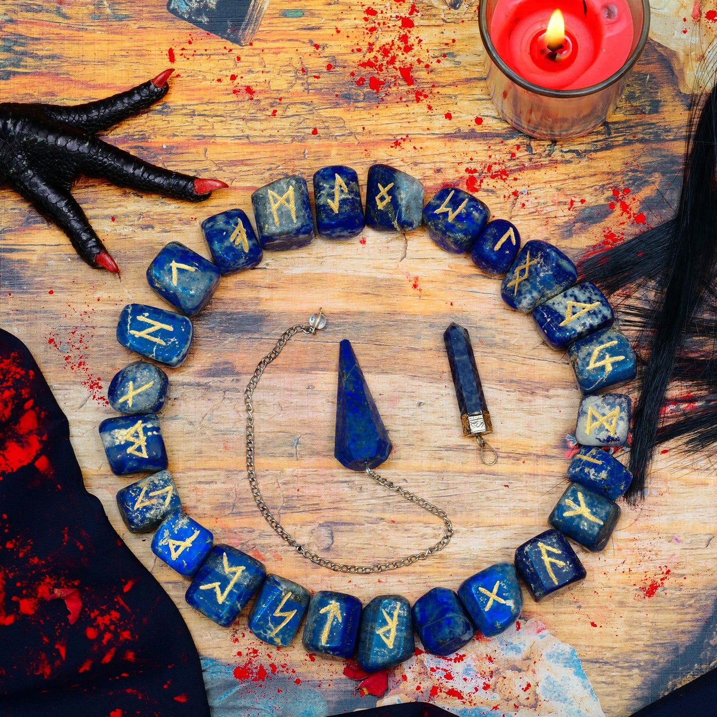 Lapis Lazuli Rune Set - Engraved Polished Stones - Futhark Rune Set
