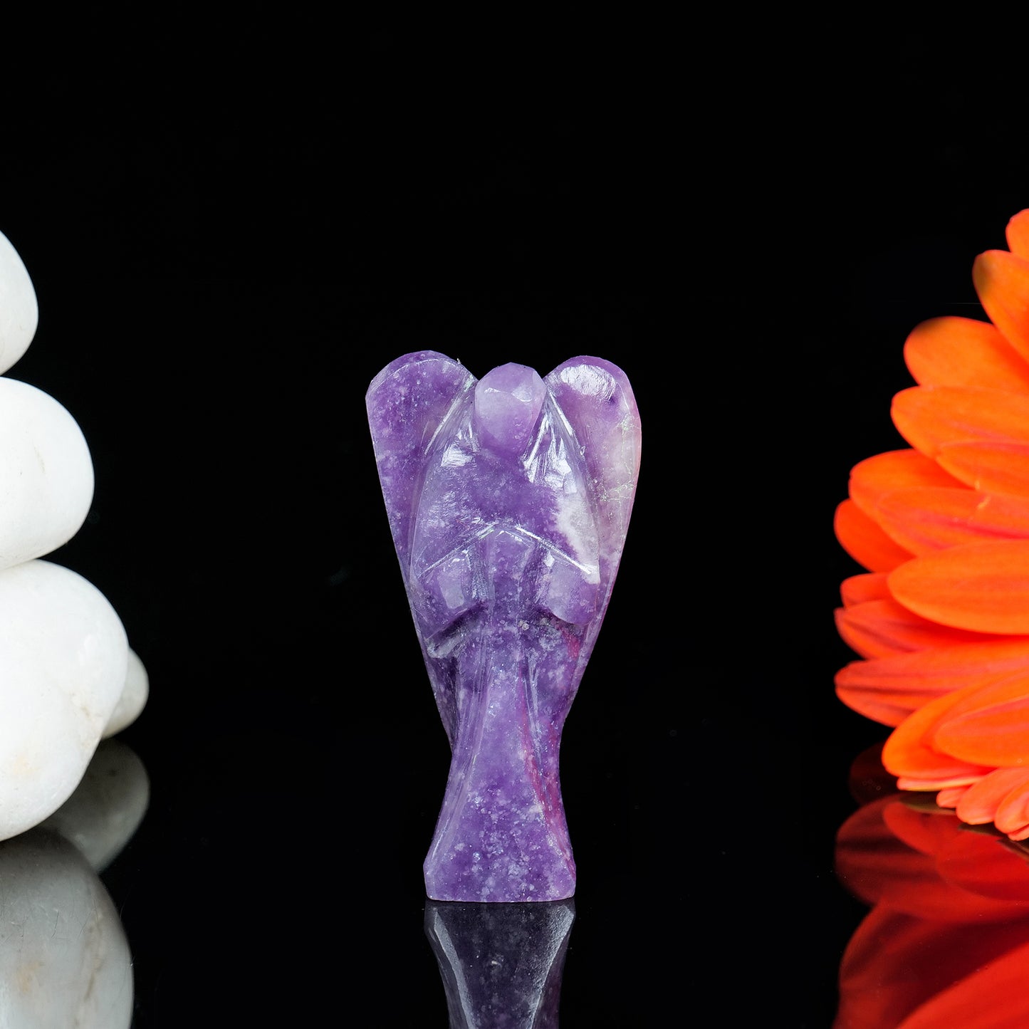 Lepidolite Angel Figurine - Natural Healing Crystal Stone Statue