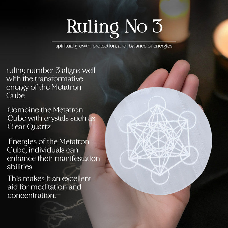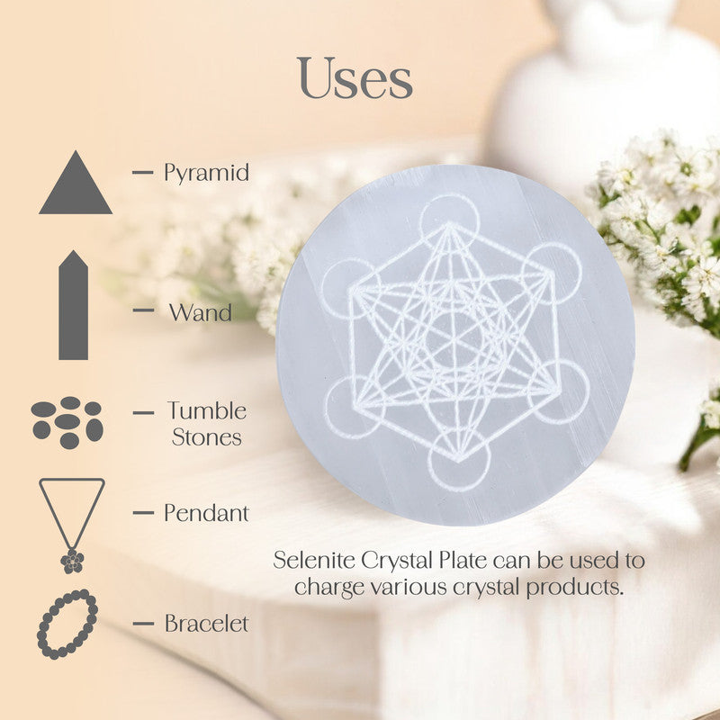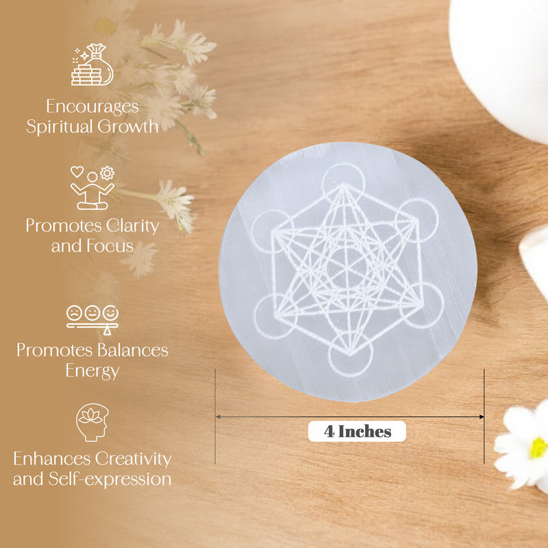 The Metatron's Cube Charging Plate features the powerful sacred geometric pattern known as Metatron’s Cube, which symbolizes the divine structure of the universe. This plate helps charge and cleanse your crystals while aligning your energy with higher spiritual frequencies. The Metatron’s Cube is often associated with creation, protection, and spiritual growth, making it an ideal tool for energy healing and meditation.