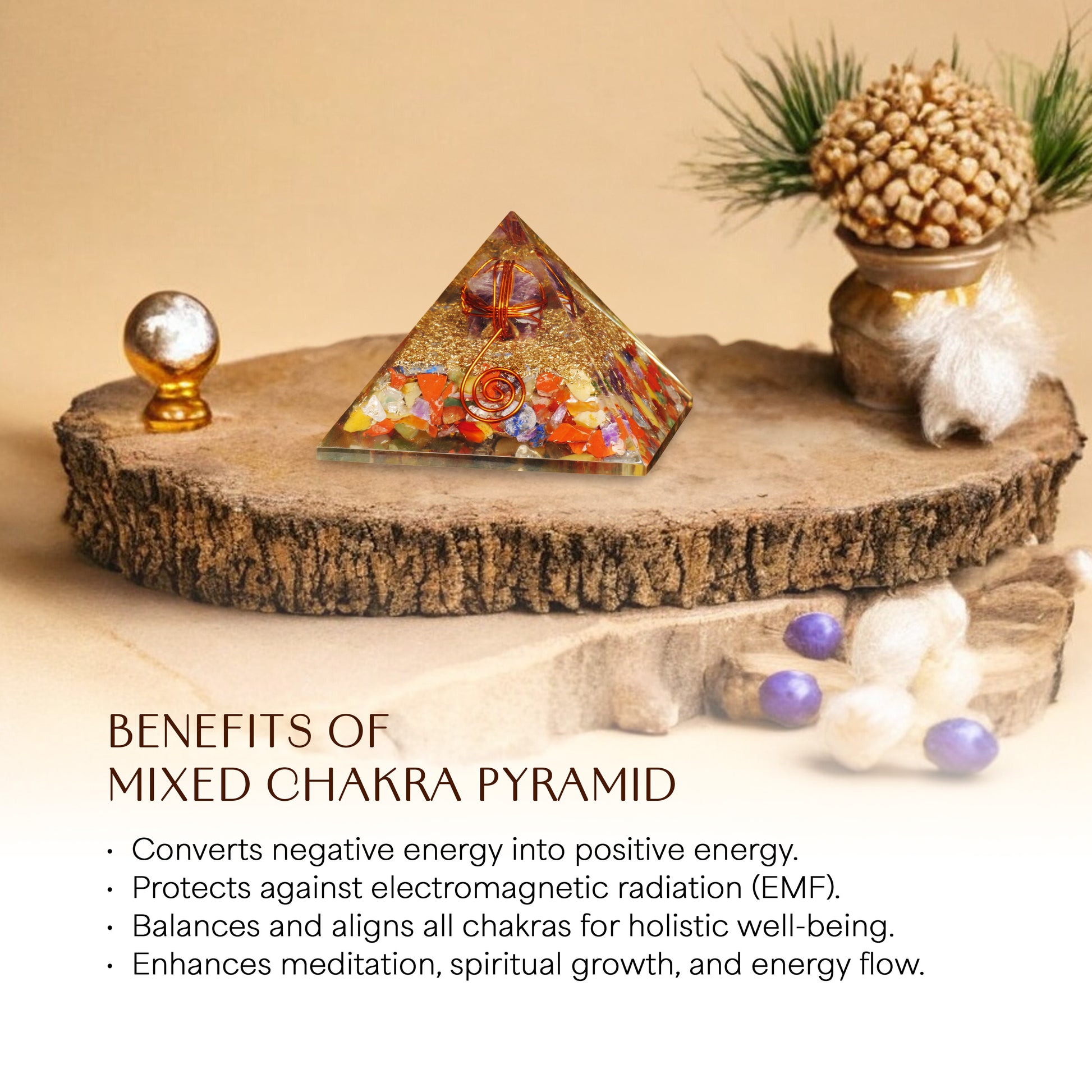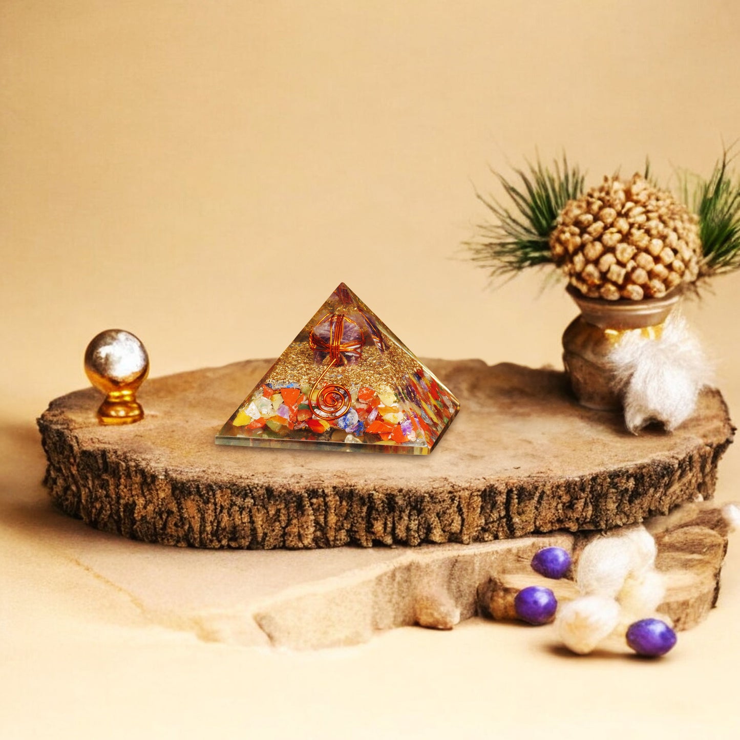 Each layer of this pyramid is embedded with vibrant gemstone chips representing the seven chakras. These natural stones work in unison to cleanse and open your energy centers, allowing for balanced emotional, physical, and spiritual well-being.