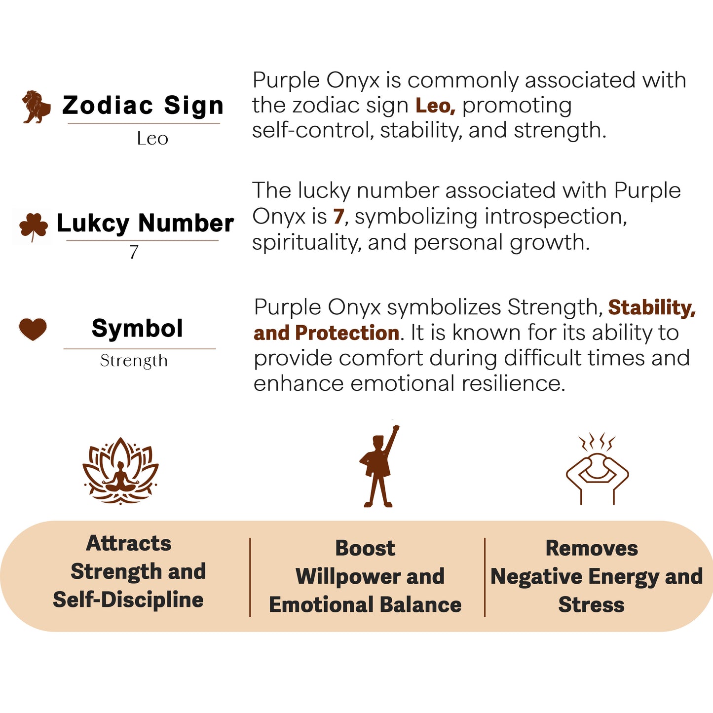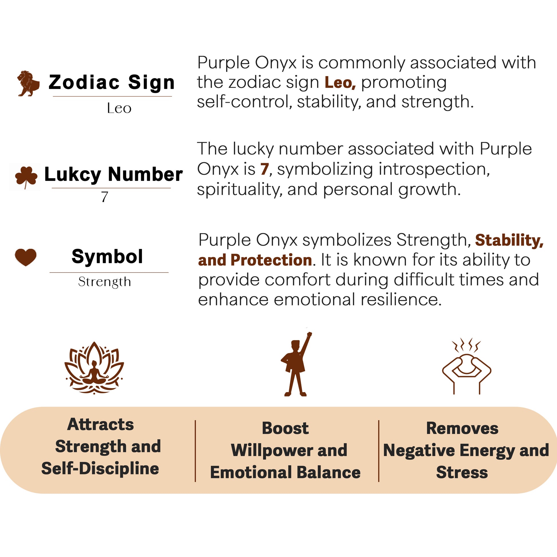 • Protection from Negativity: Purple Onyx is a powerful protective stone that shields against negative energies, psychic attacks, and emotional blockages.