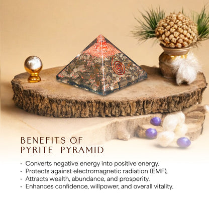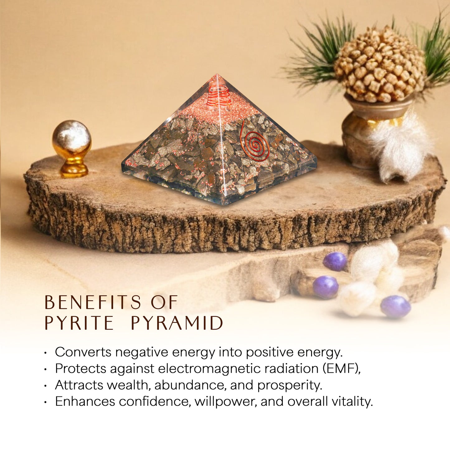 The Pyrite Orgone Pyramid with a copper coil is an essential tool for those looking to invite abundance, protection, and confidence into their lives. Its combination of powerful energies and protective qualities makes it a versatile addition to any space.