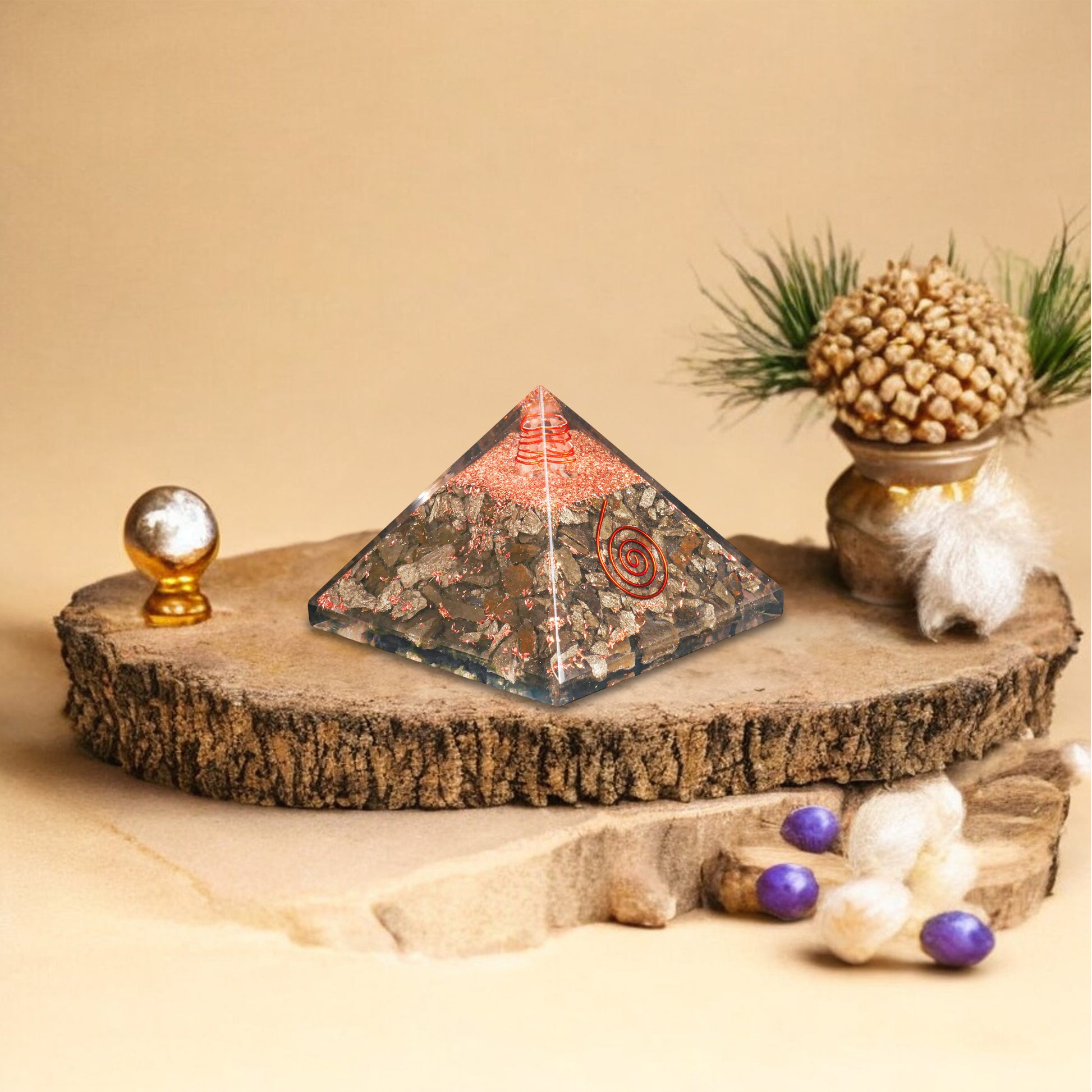 The Pyrite Orgone Pyramid is a powerful symbol of wealth, protection, and confidence. Known as "Fool's Gold," Pyrite is highly valued for its ability to attract abundance and prosperity while shielding against negative energy. This pyramid amplifies the energy of Pyrite, making it a perfect tool for those seeking to boost their personal power and manifest success in all areas of life.