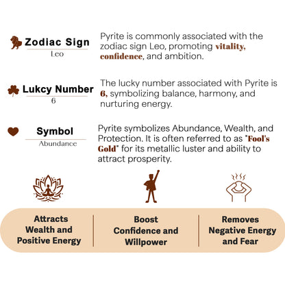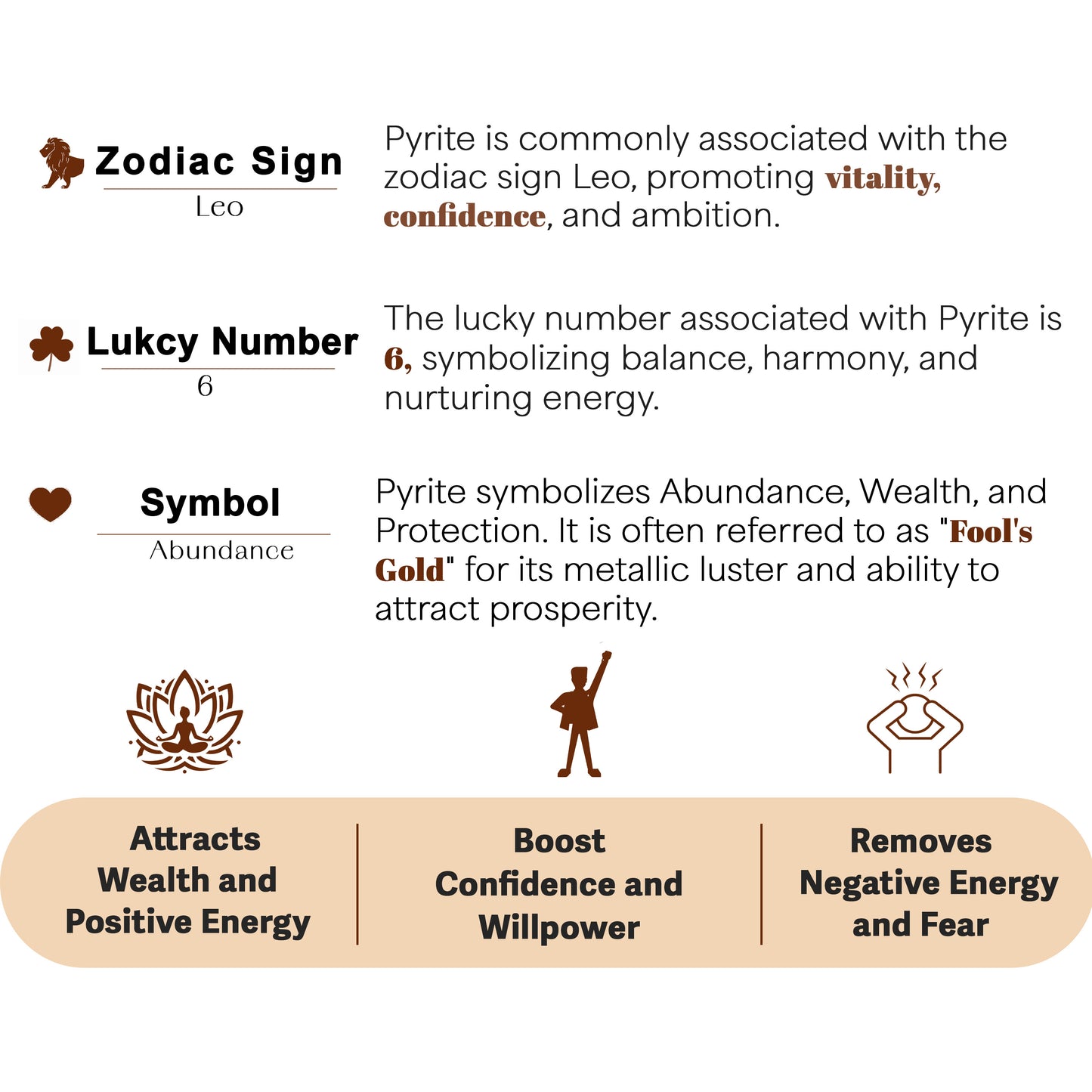 • Attracts Abundance: Pyrite is known for its ability to attract wealth, success, and financial opportunities.