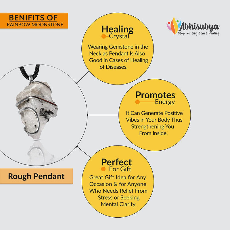 RAINBOW MOONSTONE - this packet includes 1 authentic natural RAINBOW MOONSTONE crystal pendant with black thread. Wearing crystal gemstones in a form of jewellery makes them easy to use and carry. Crystal pendants can be worn in daily life making the crystal.