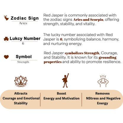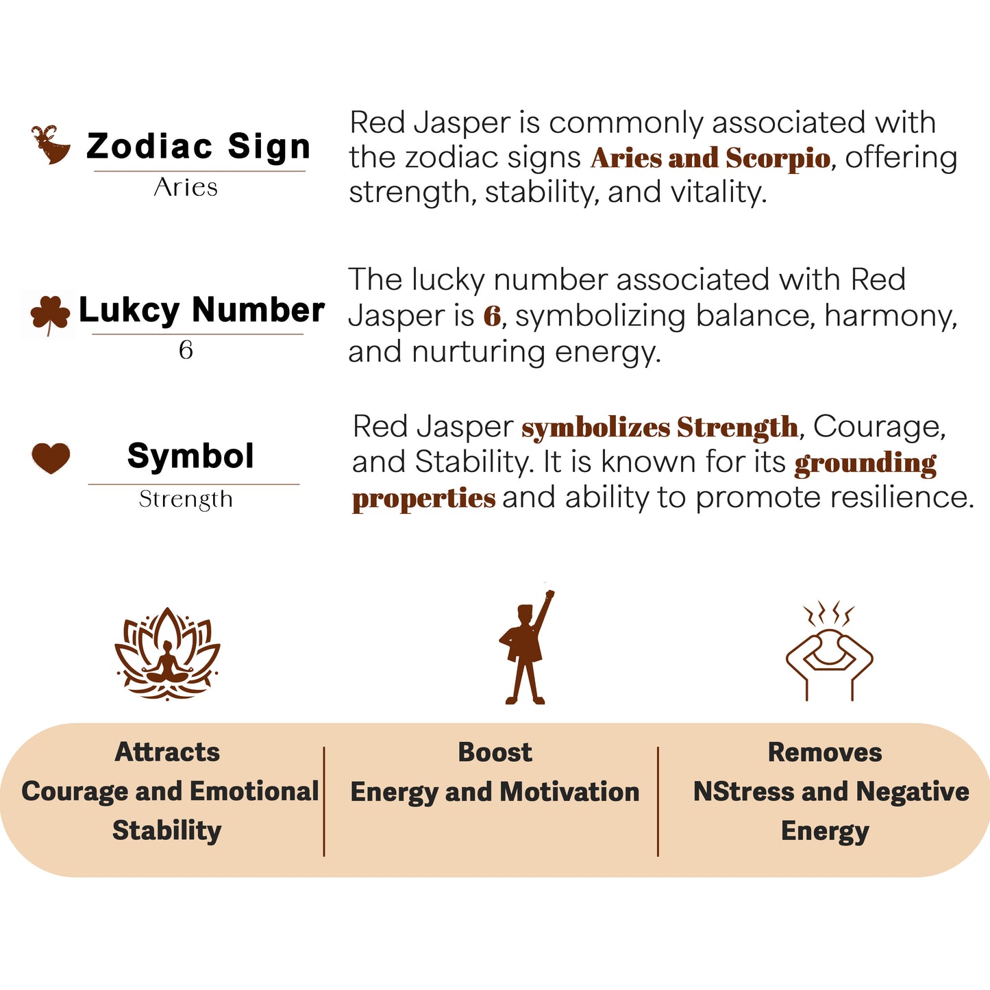 • Strength & Vitality: Known as the "Stone of Endurance," Red Jasper boosts your energy levels, promoting vitality, strength, and courage during challenging times.