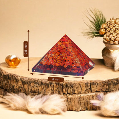 The Red Jasper Orgone Pyramid is a powerful tool for enhancing strength, vitality, and grounding energy. Red Jasper is known for its ability to stabilize emotions, build courage, and bring calm in times of stress. This pyramid, embedded with the sacred copper coil, enhances the energetic flow, promoting harmony and protection in your environment.