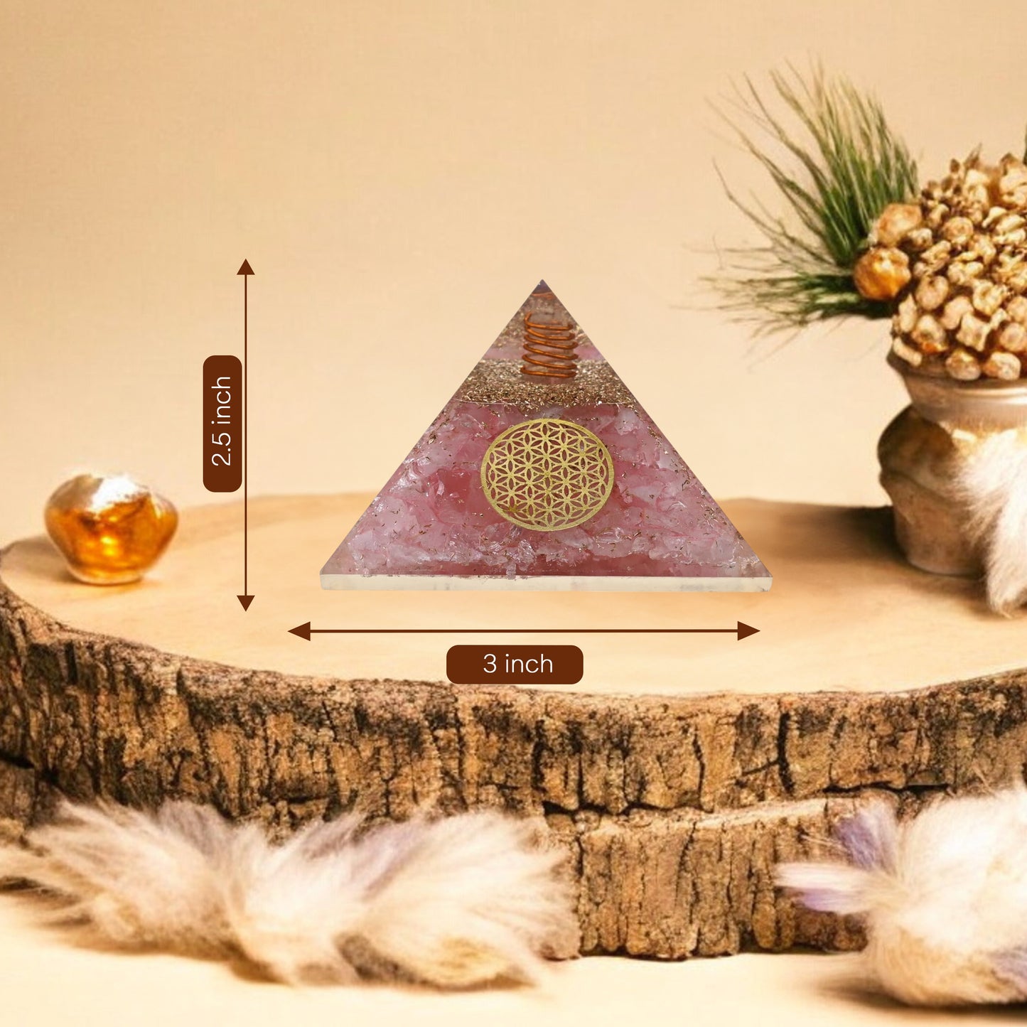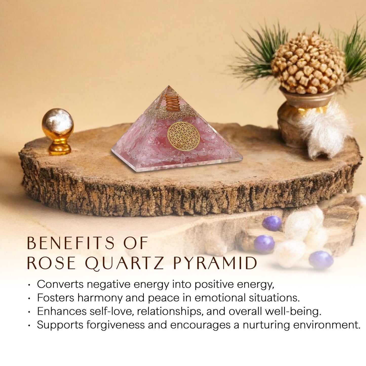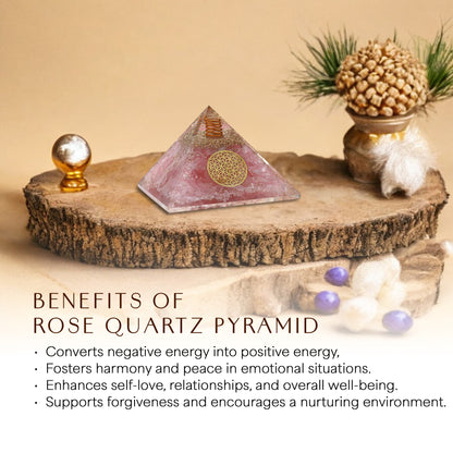 This Rose Quartz Orgone Pyramid is ideal for promoting positivity, emotional balance, and inner peace. Use it to: