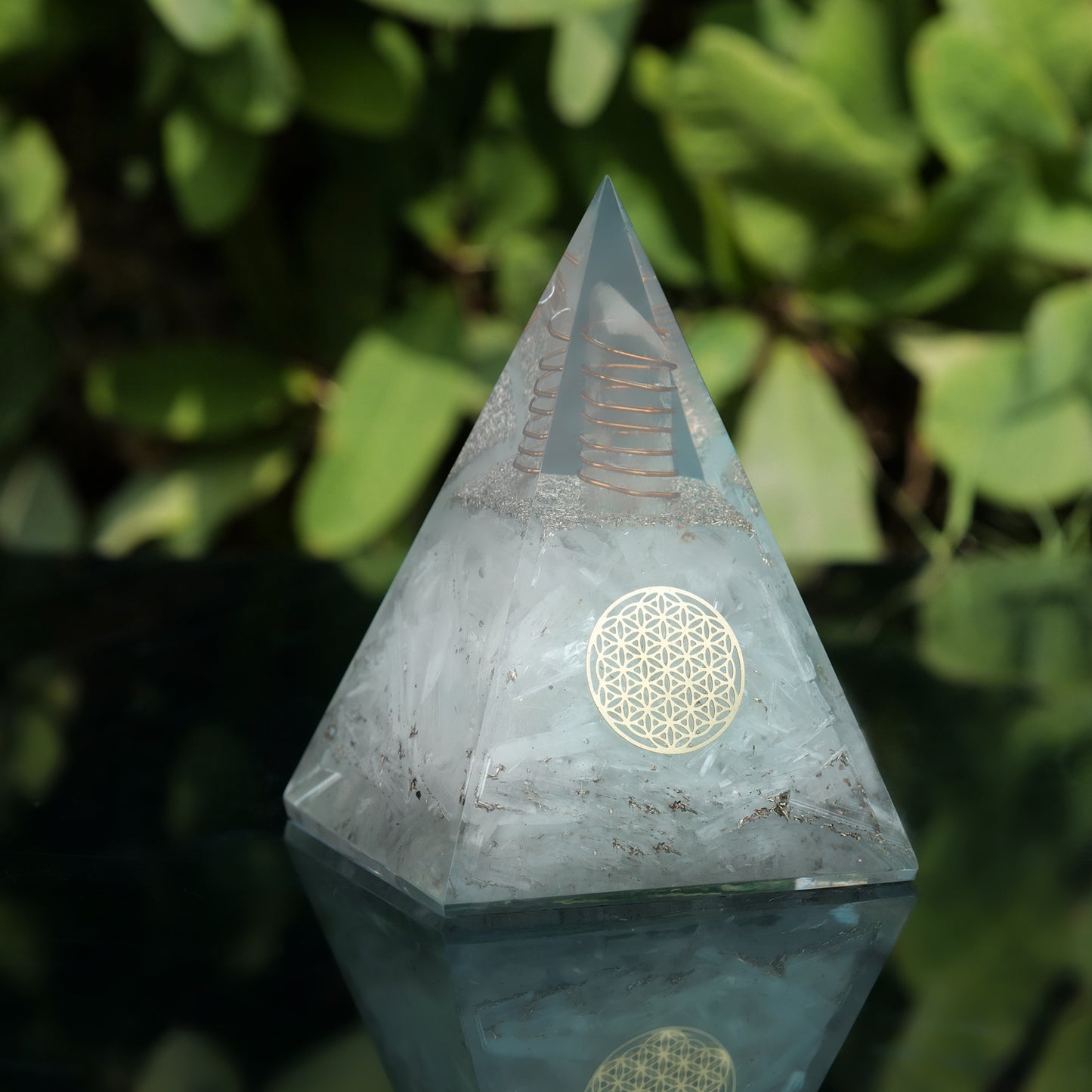 Spiritual Clarity: The Selenite Orgonite Pyramid radiates a purifying energy, promoting spiritual clarity and insight, making it an ideal tool for meditation and spiritual practices.