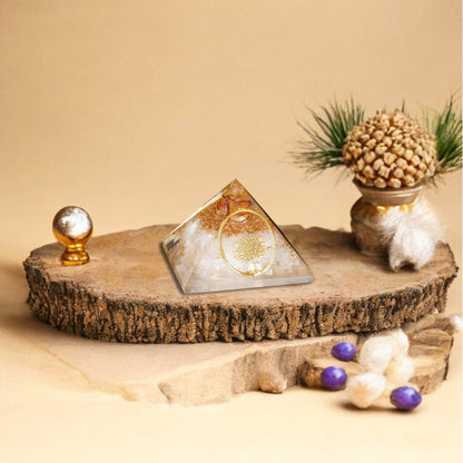 Bring clarity and purity into your life with this elegant Selenite Orgone Pyramid. Its subtle yet powerful energy makes it a beautiful addition to any space, promoting mental clarity, energy balance, and a peaceful atmosphere.
