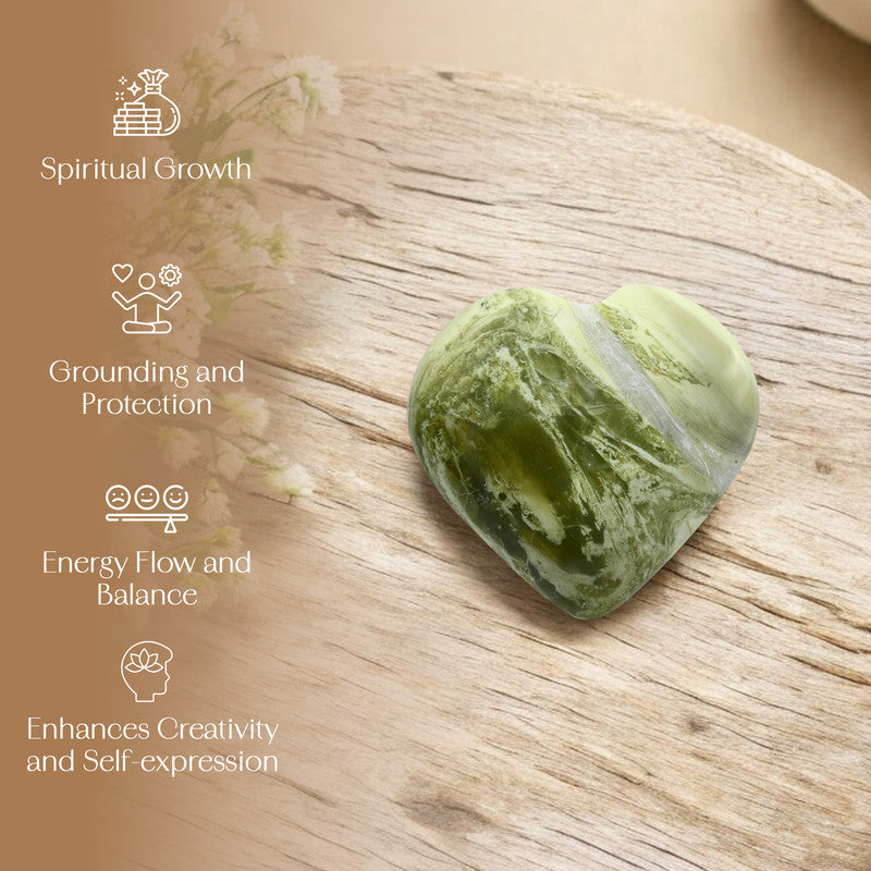 Serpentine crystal healing stones are known for activating the kundalini energy, unlocking inner wisdom, and detoxifying the emotional body. This puff heart provides a gentle yet powerful way to work with this transformative energy, making it one of the most supportive Serpentine healing stones and crystals for anyone on a healing or awakening journey.
