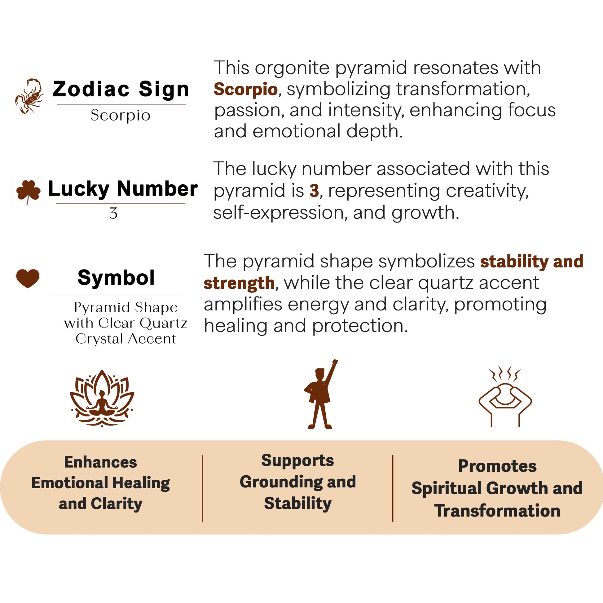 • Clarity and Focus: This pyramid aids in mental clarity and promotes a balanced, clear-minded state, ideal for achieving focus in demanding environments.