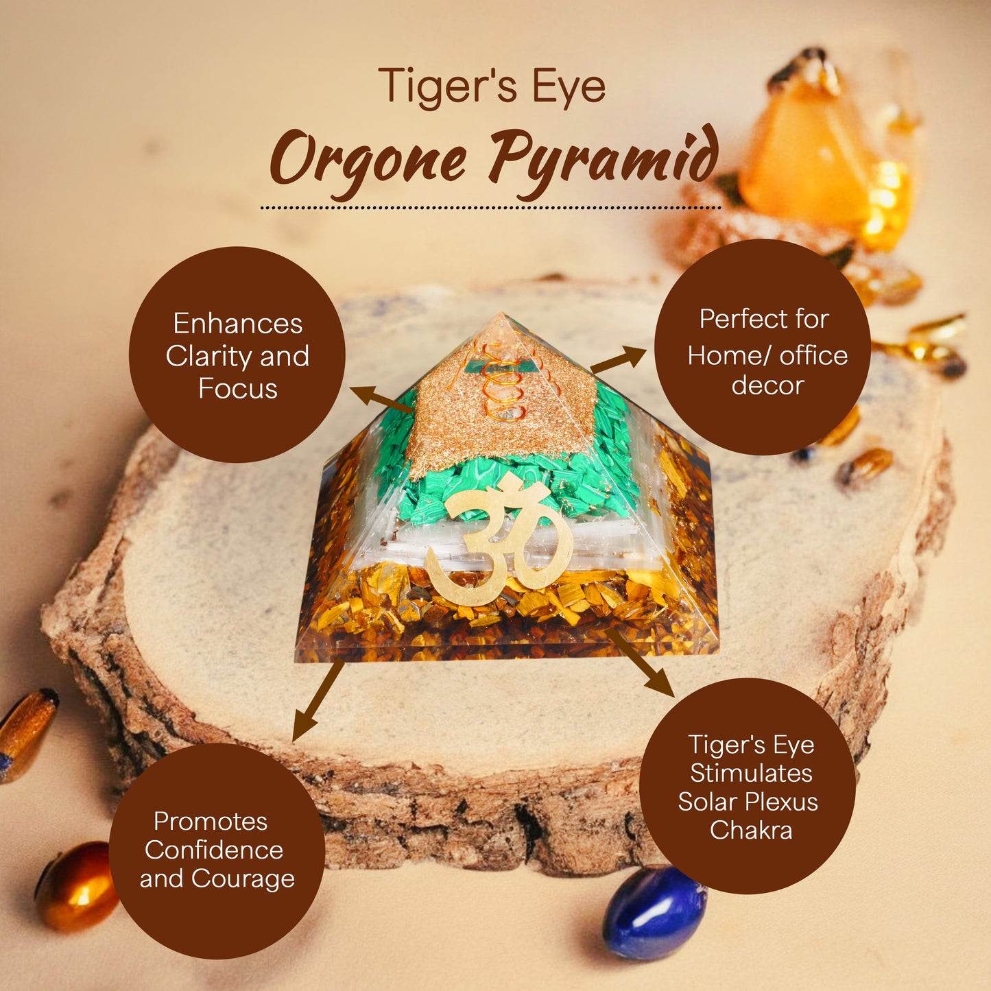 Benefits of the Tiger Eye, Malachite, and Selenite Orgone Pyramid