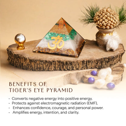 The Tiger Eye, Malachite, and Selenite Orgone Pyramid is a powerful combination of crystals, each with its unique properties, working together to offer protection, emotional healing, and mental clarity. This pyramid is ideal for those seeking balance and strength in their spiritual journey.
