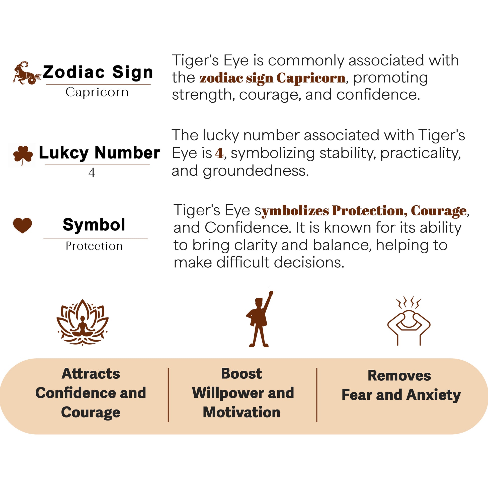 Protection and Courage: Tiger Eye strengthens willpower, boosts self-confidence, and shields against negative energies.