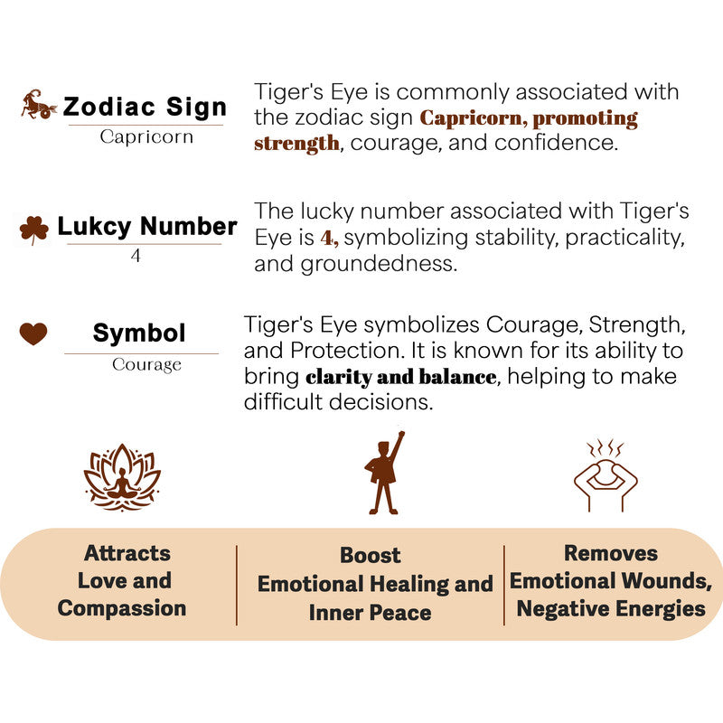 • Boosts Confidence: Tiger Eye is known for its confidence-boosting properties, helping to increase self-belief and assertiveness.