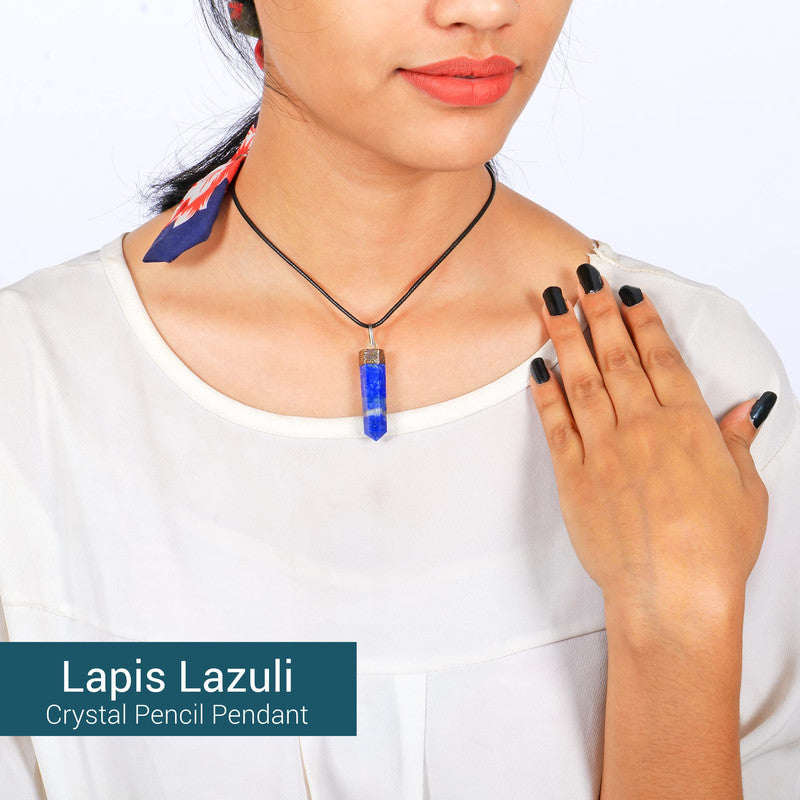 Lapis Lazuli Healing Crystal Stone Pendant - Pencil Necklace For Women